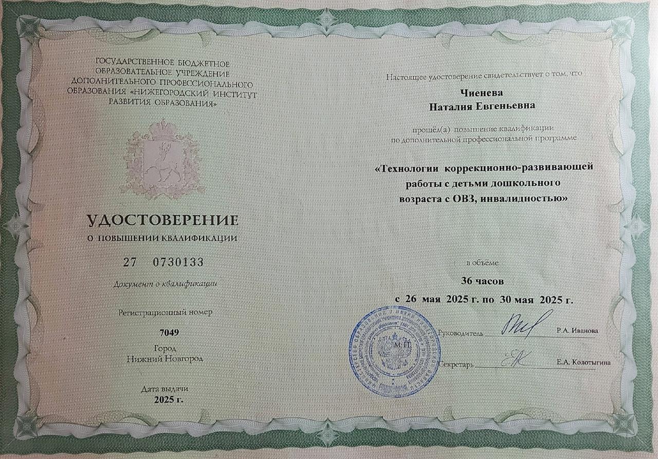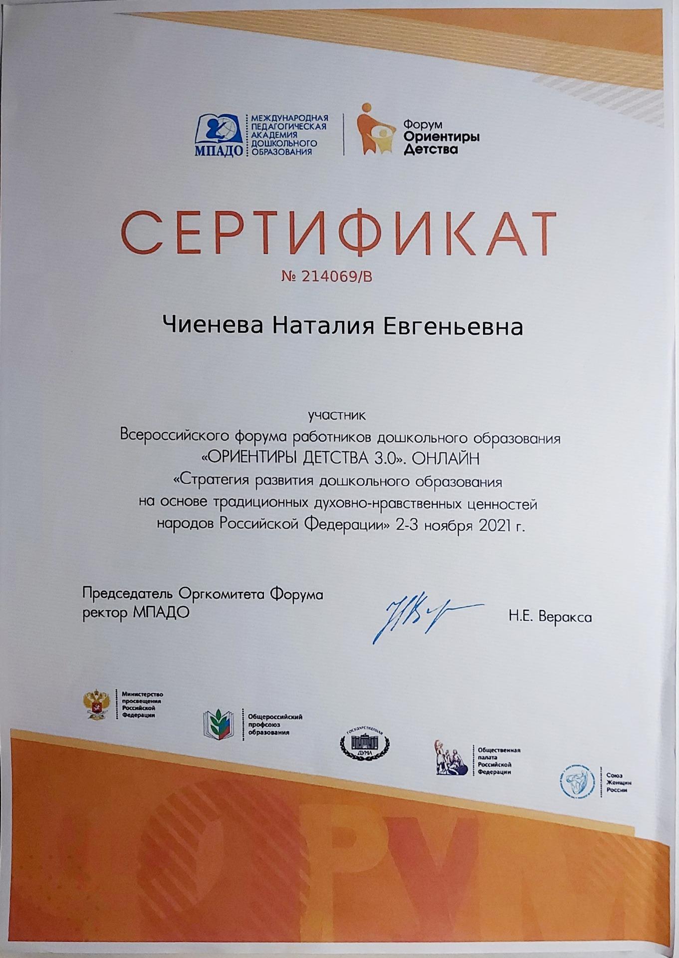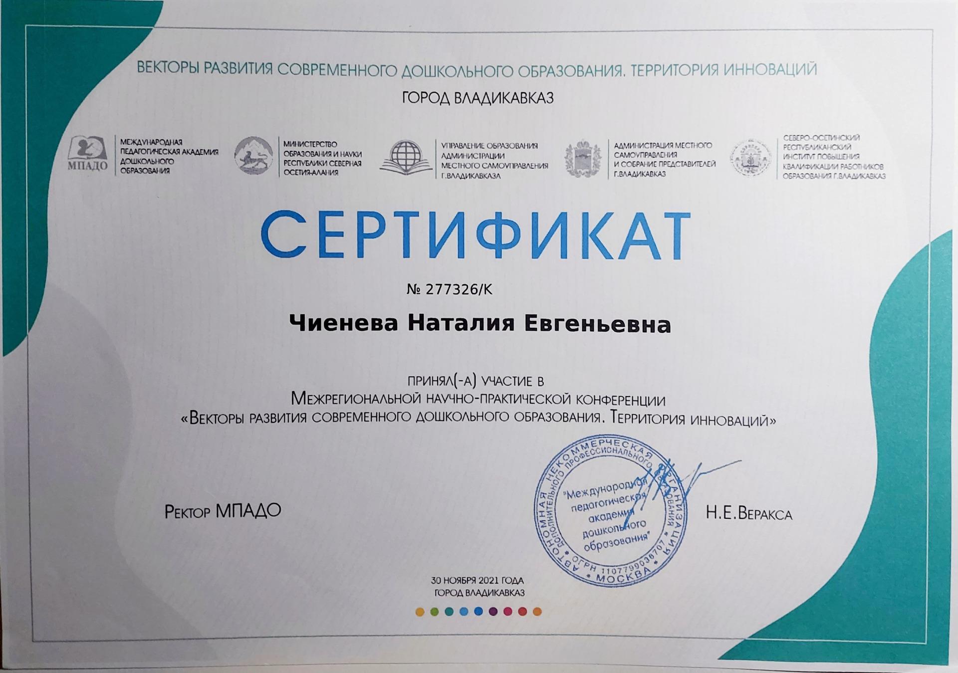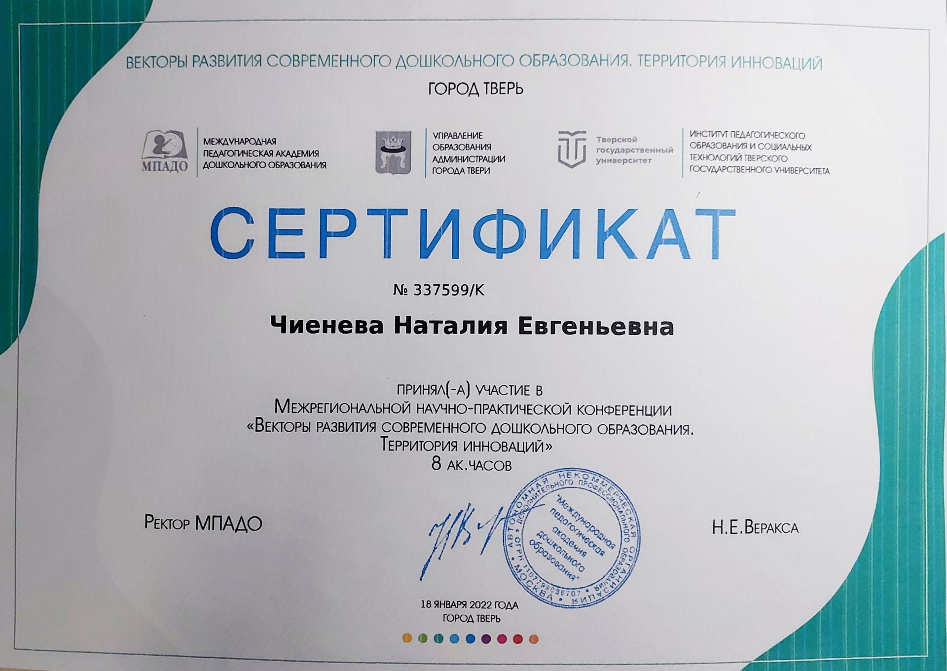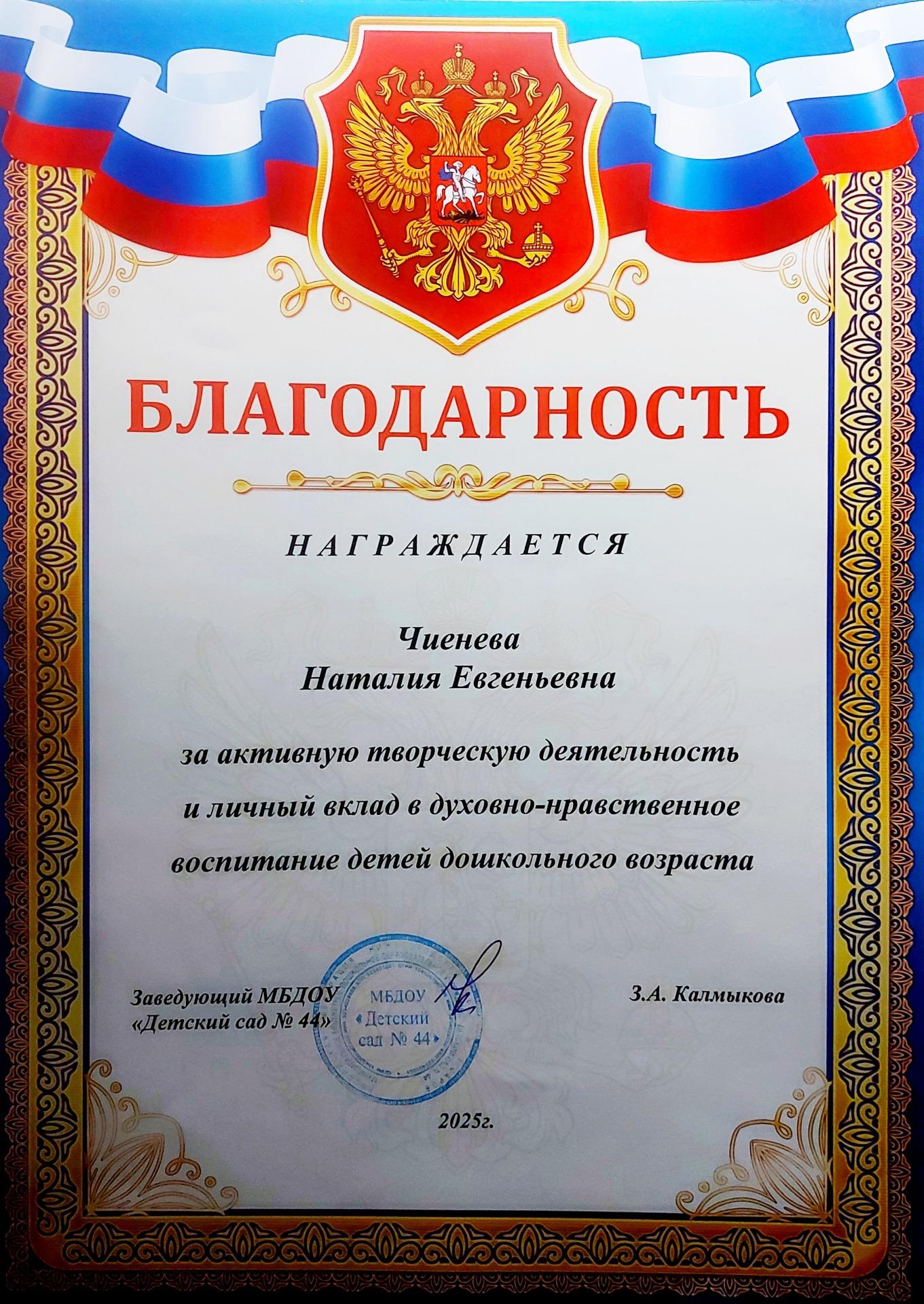Чиеневой Наталии Евгеньевны