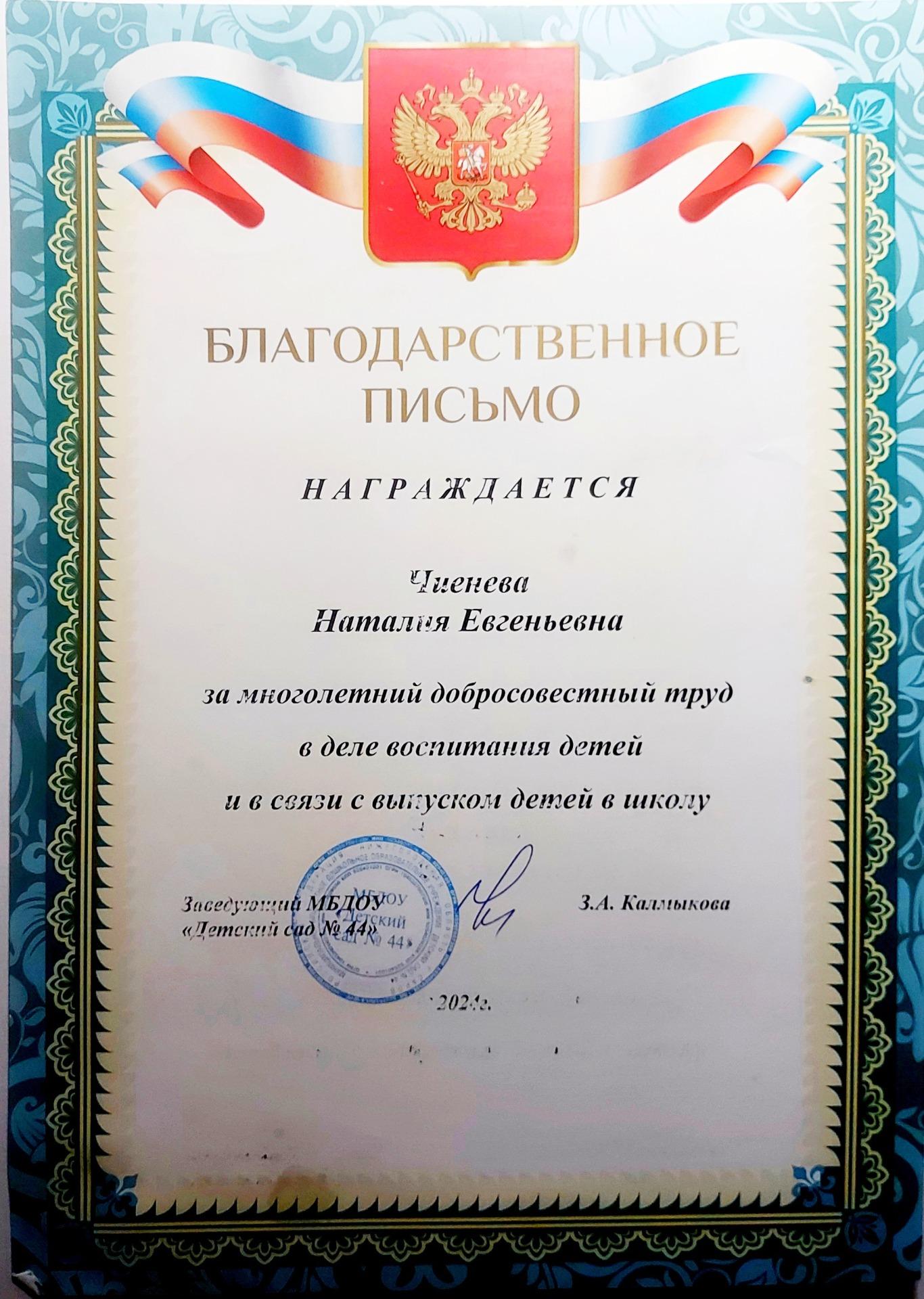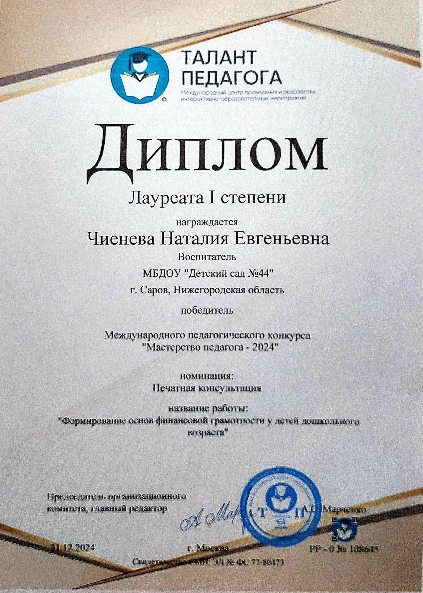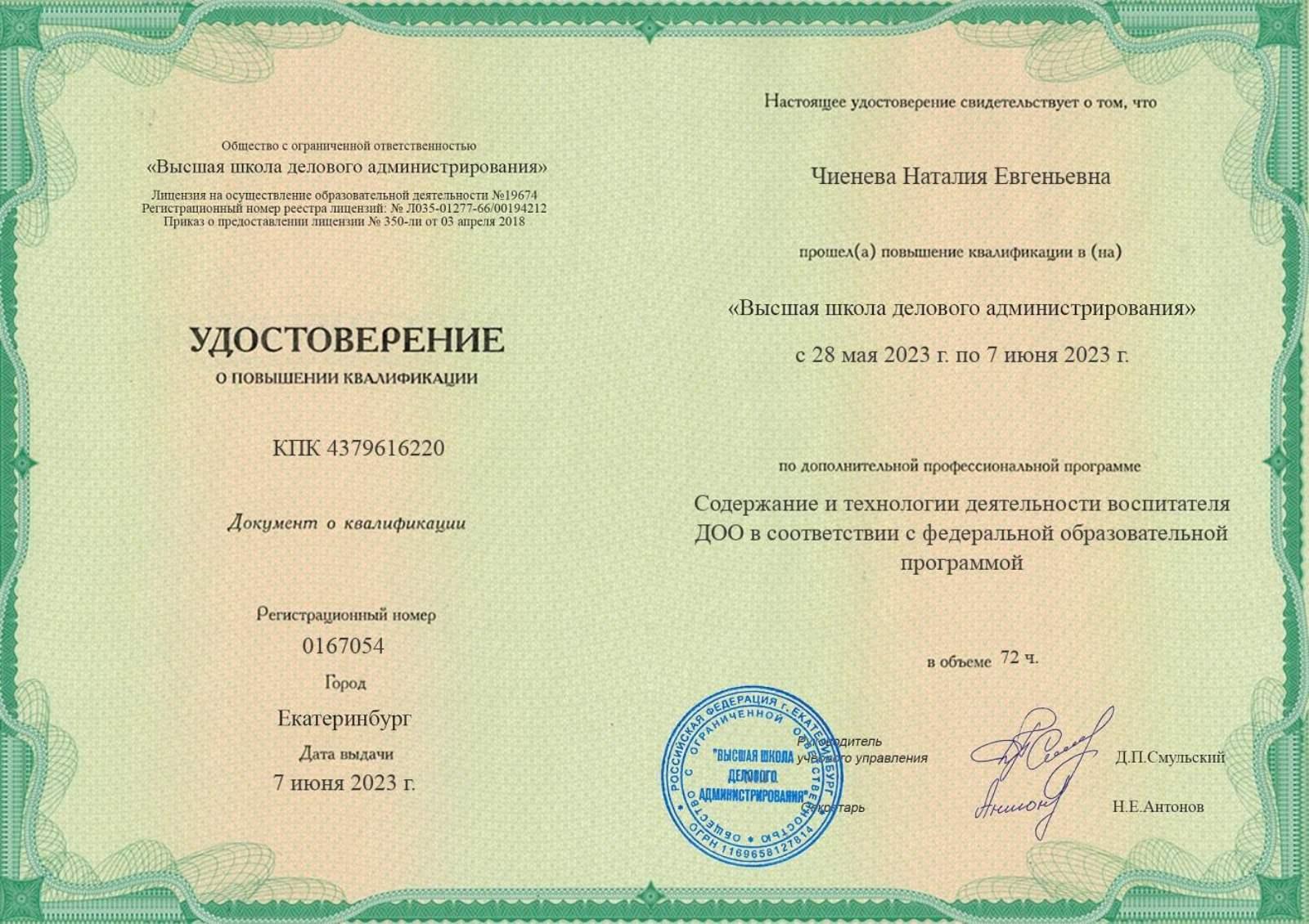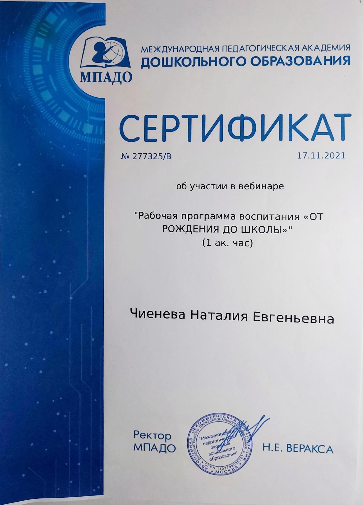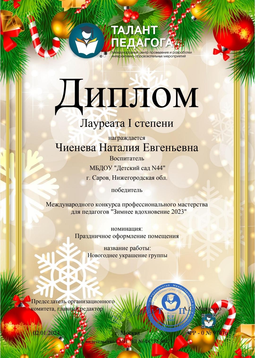 Чиеневой Наталии Евгеньевны