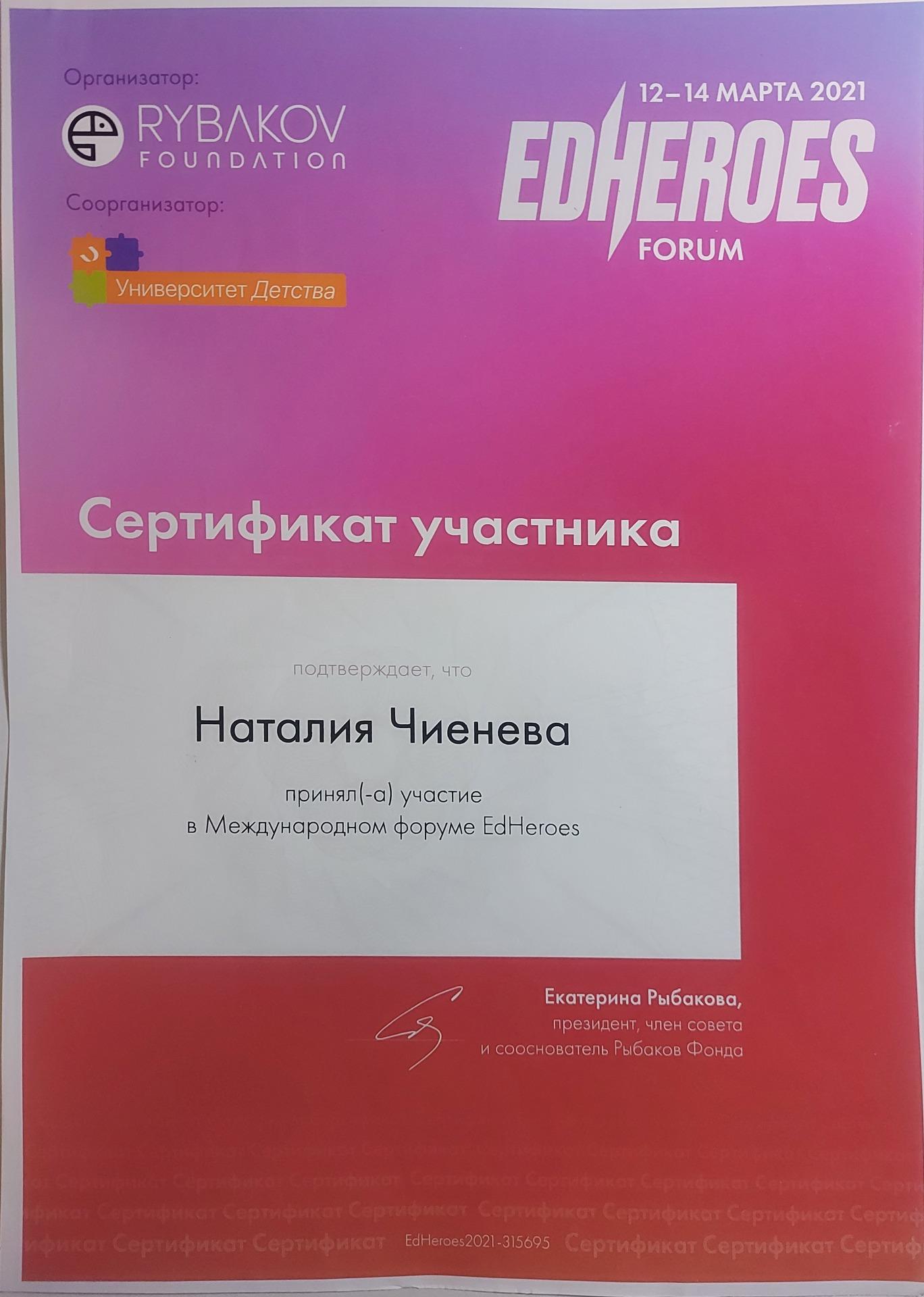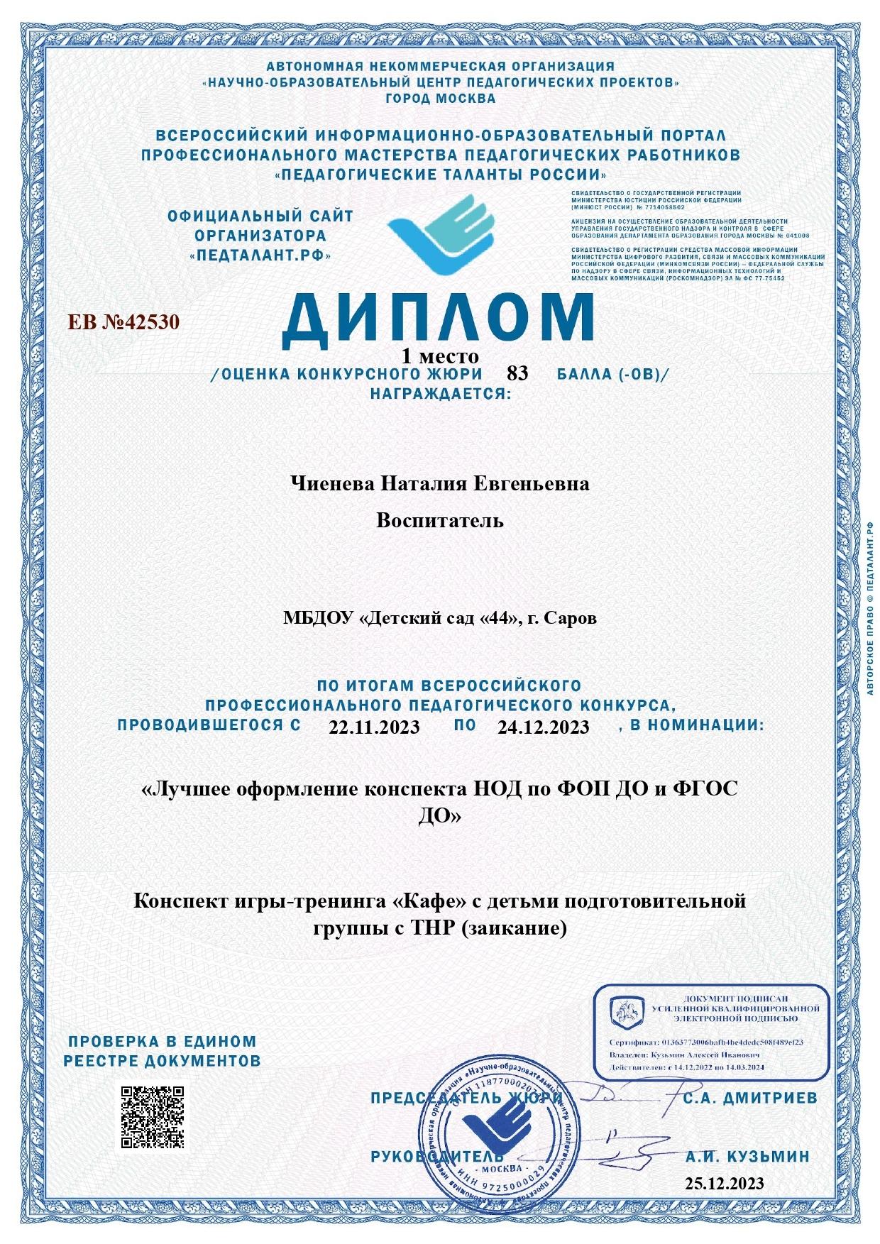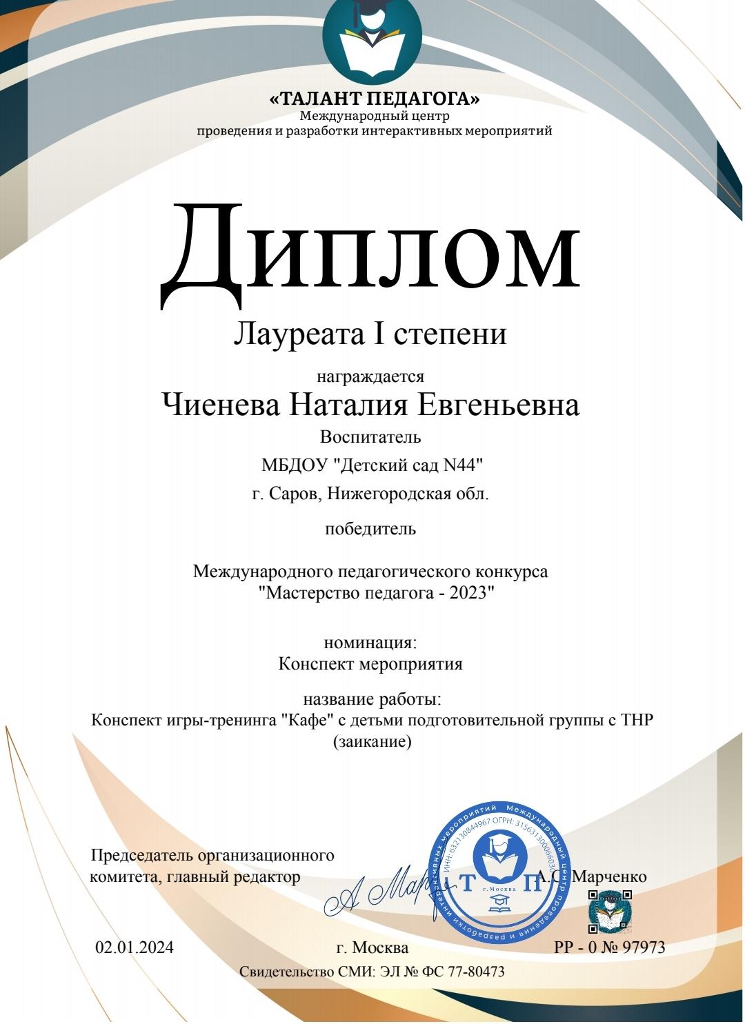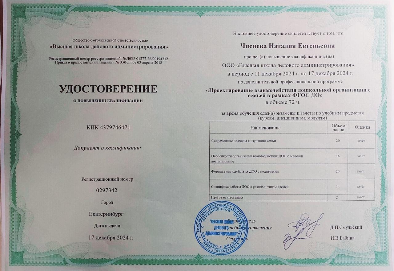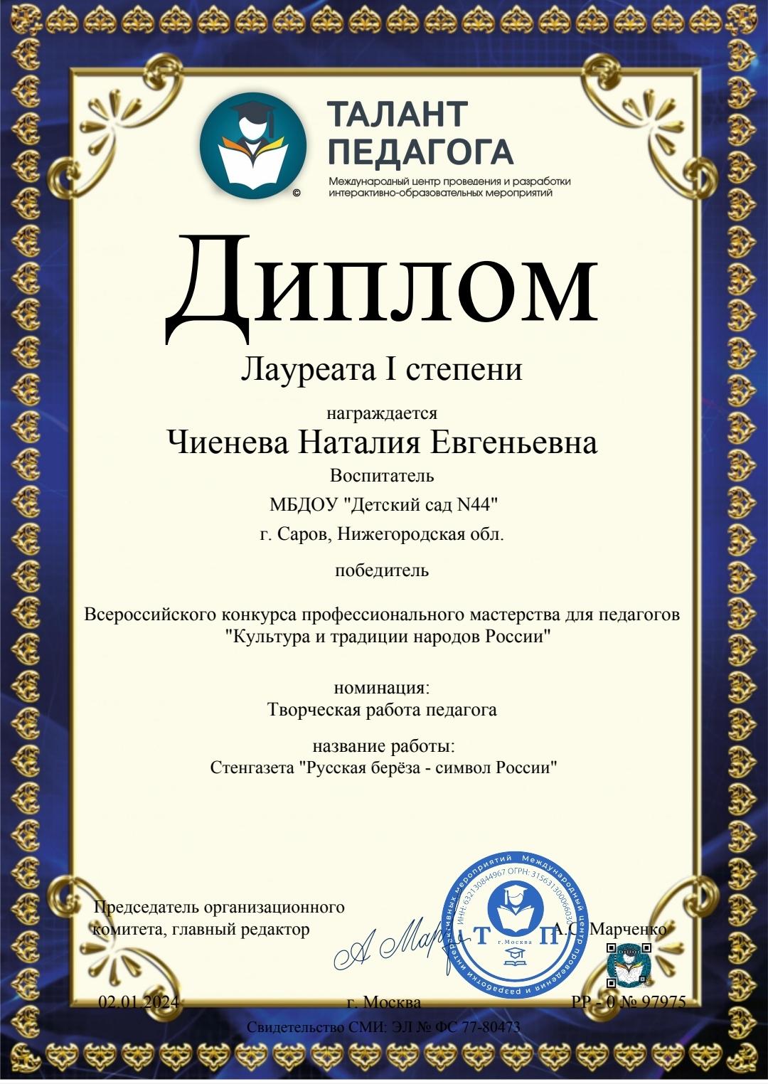 Чиеневой Наталии Евгеньевны