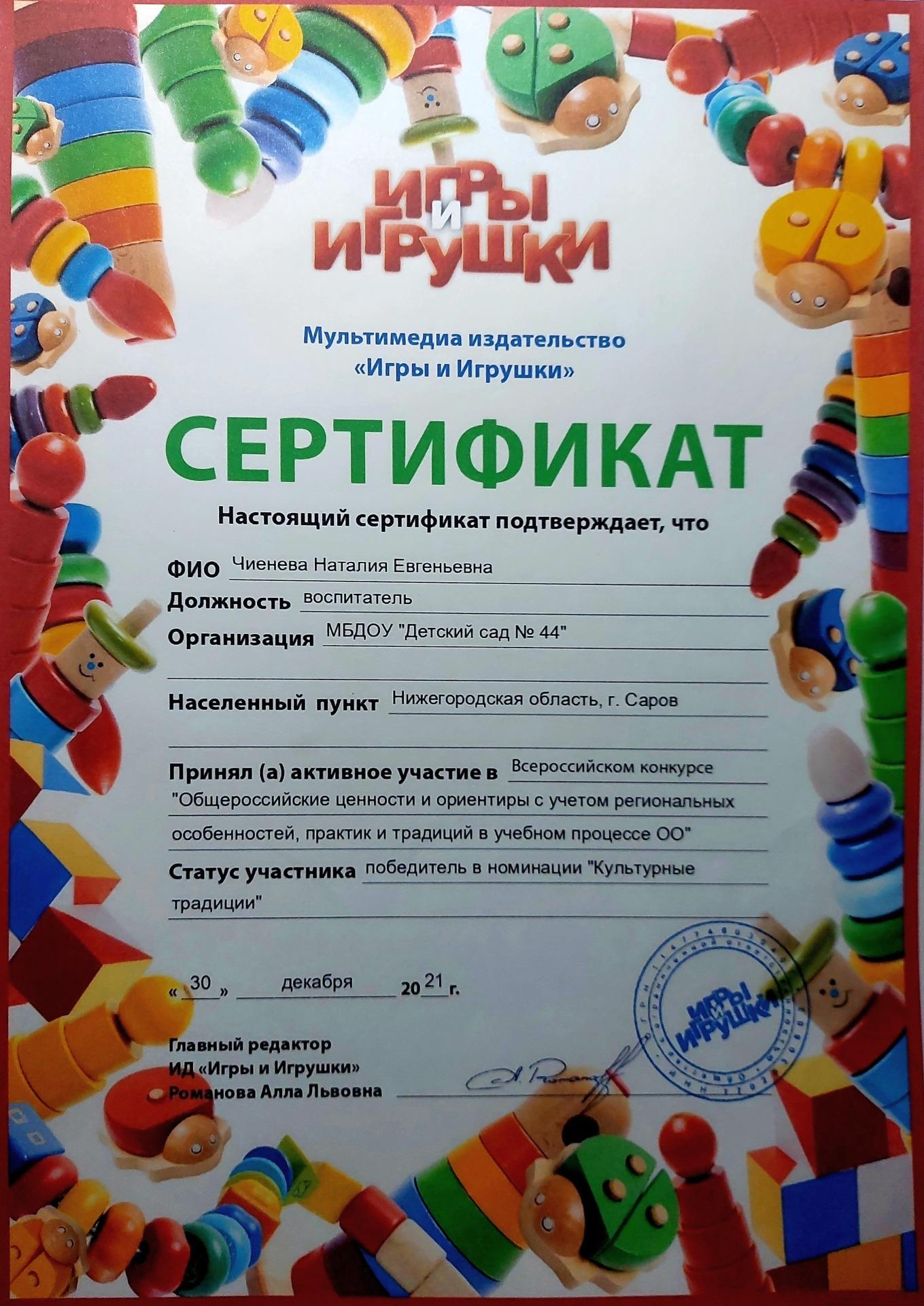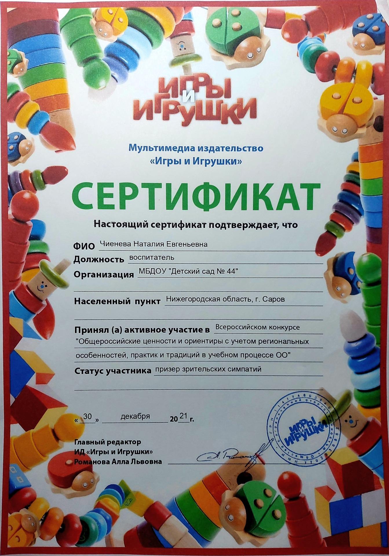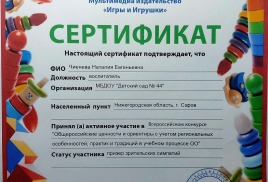 воспитатель МБДОУ "Детский сад №44" г. Саров высшей квалификационной категории